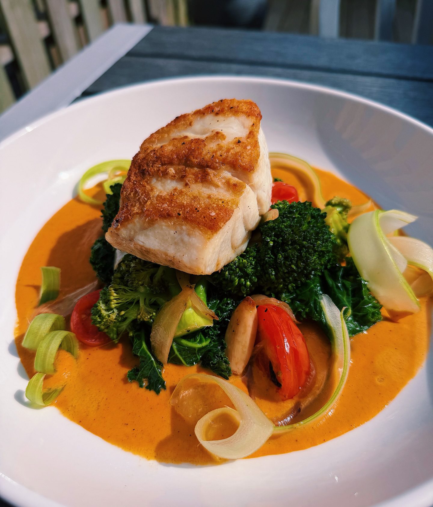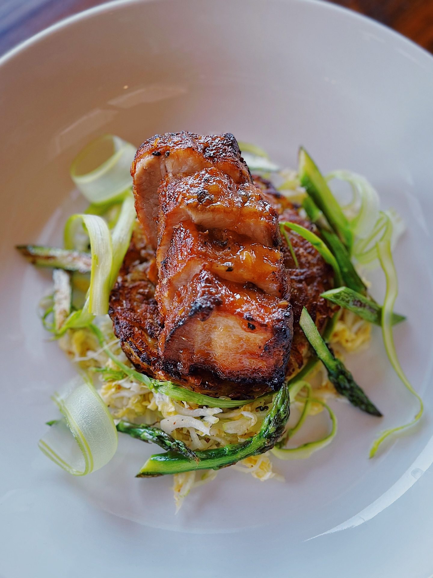 seared pork belly, apple & napa cabbage potato cake, shaved asparagus, apple bourbon glaze ❤️‍🔥