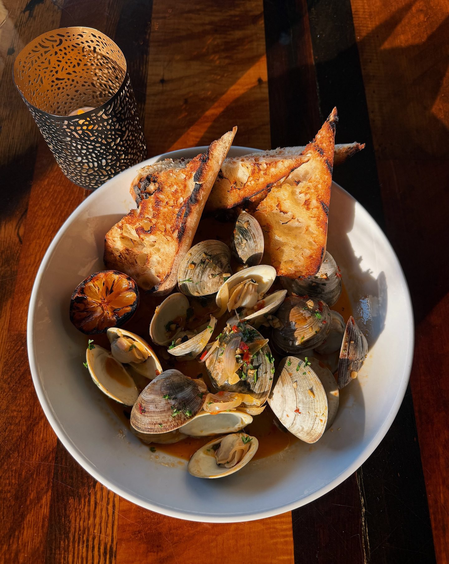 We’ve got some delicious Lynnhaven River Middleneck Clams on special! Bathed in a Calabrian chili beurre blanc & served with grilled bread.