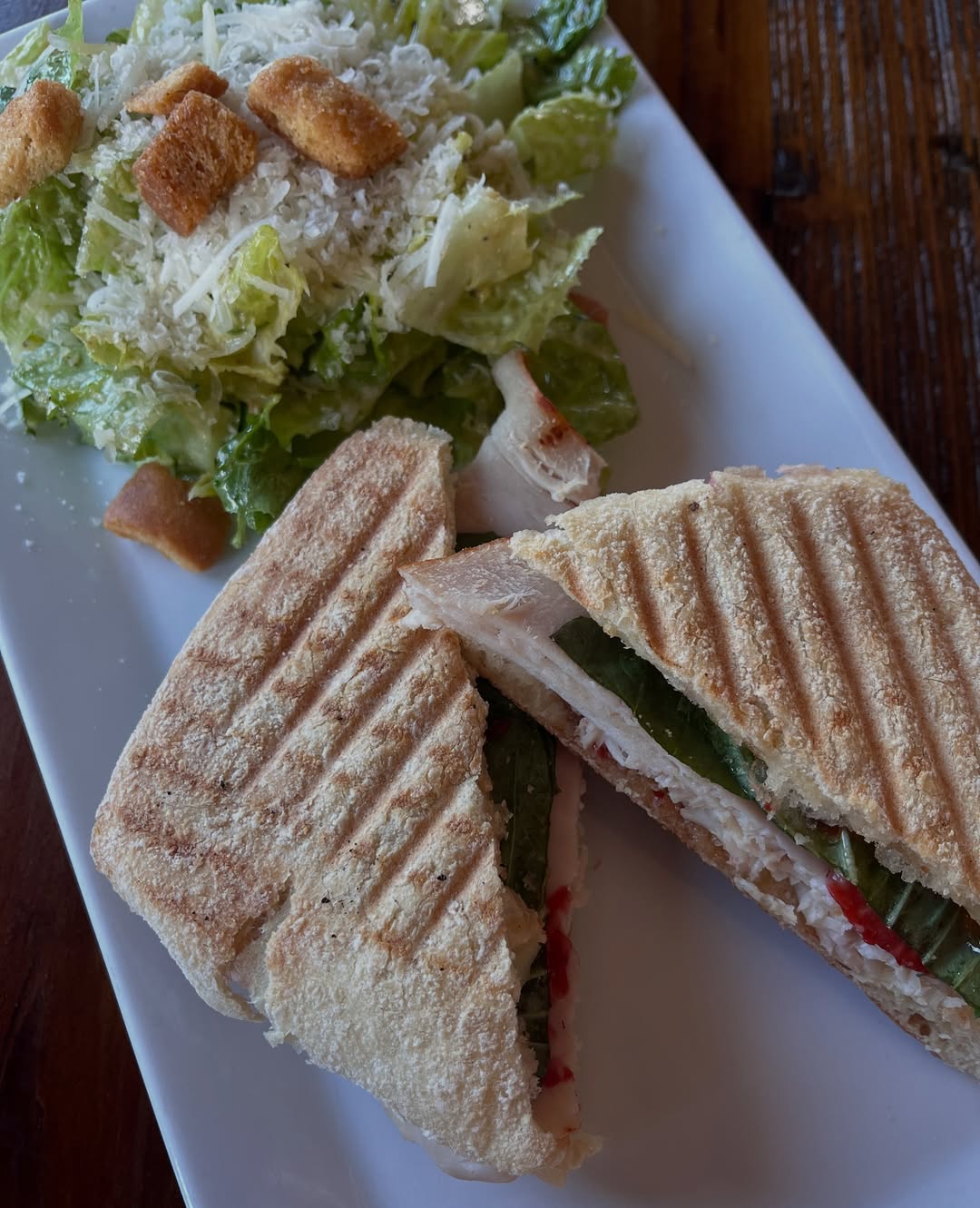 Today’s special: Seared Halibut with garlic rosemary roasted fingerling potatoes, sautéed snow peas, and carrots over a roasted red pepper cream sauce