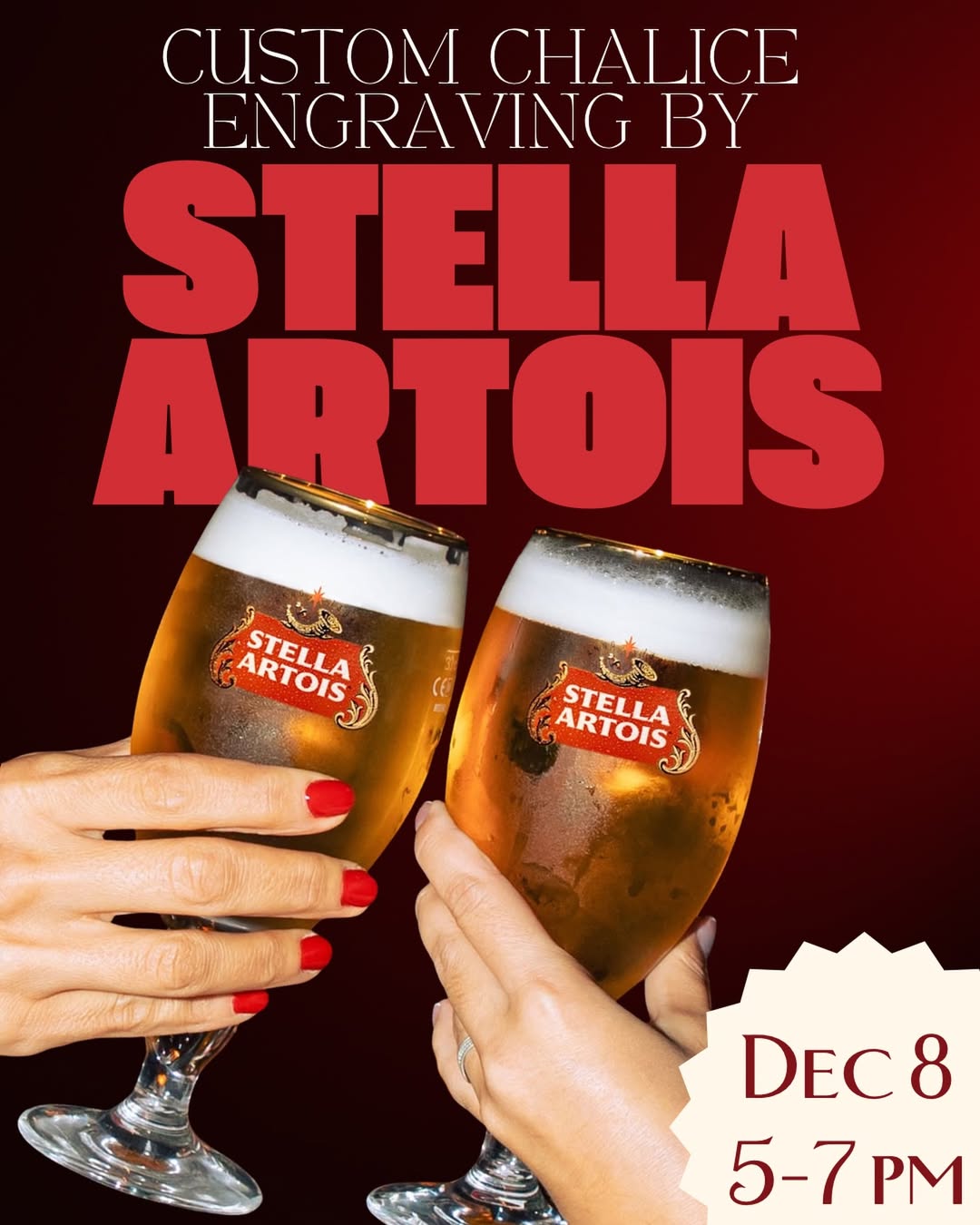 This Monday, Dec 8 from 5-7pm, our friends from Stella Artois will be at TRiO engraving Stella chalices!