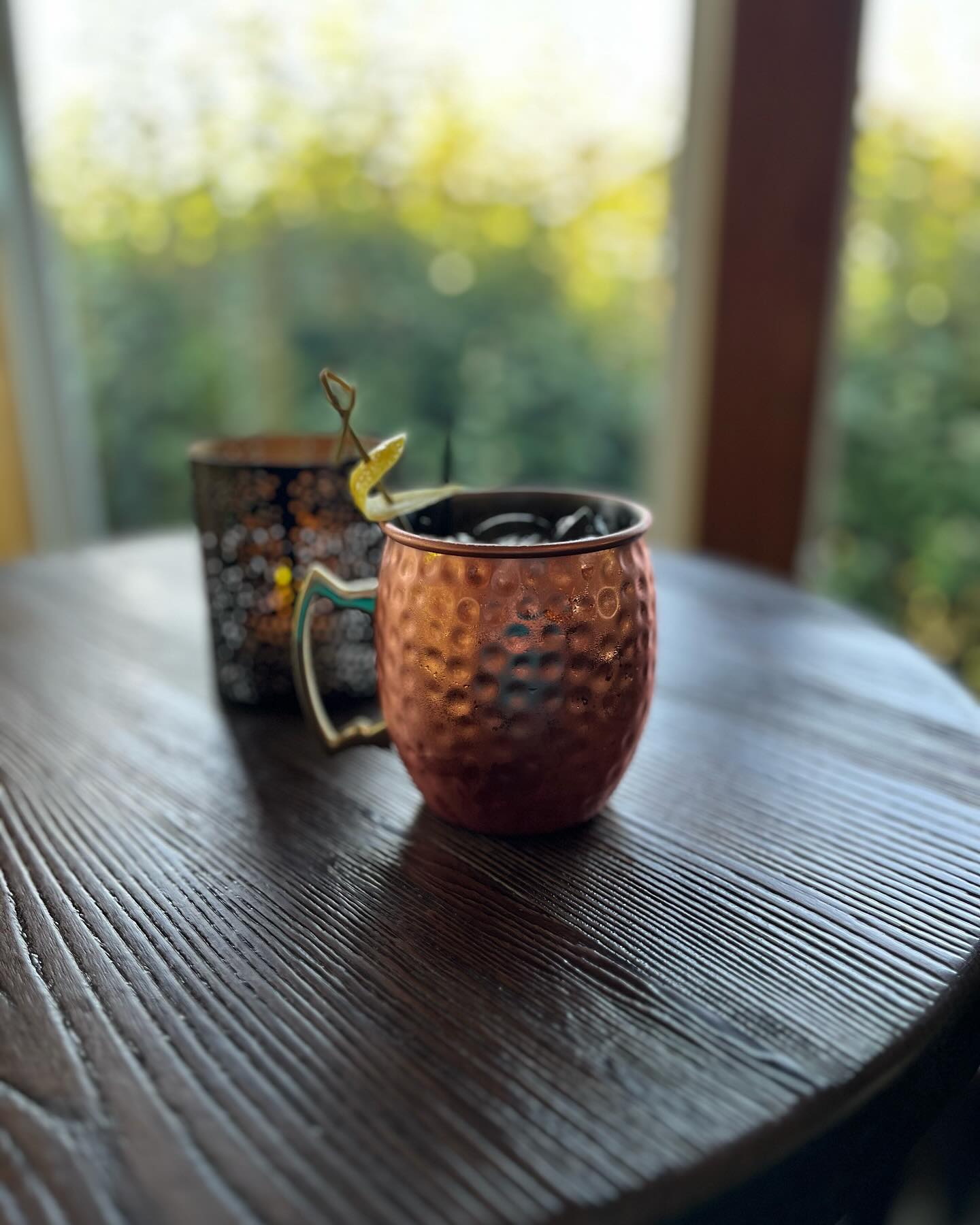 We’re just peachy thinking about our featured #cocktail the “Peach Bourbon Mule” made with @fourrosesbourbon, housemade NC #peach simple syrup, lemon juice and #gingerbeer 🍑 Open 11am-9pm daily